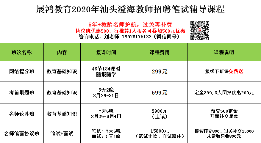 展鸿2020年汕头澄海教师笔试课程简章