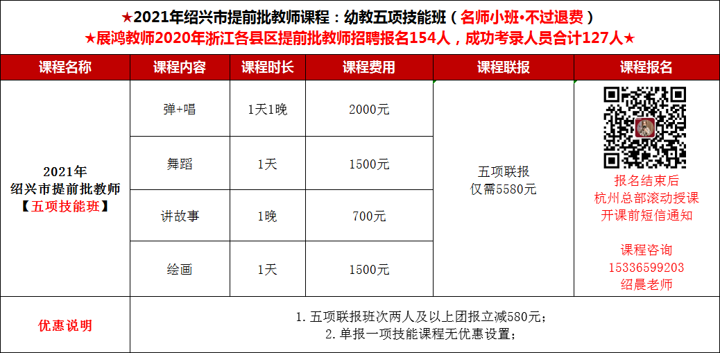 2021年绍兴市教师提前批教师五项技能班(学前)